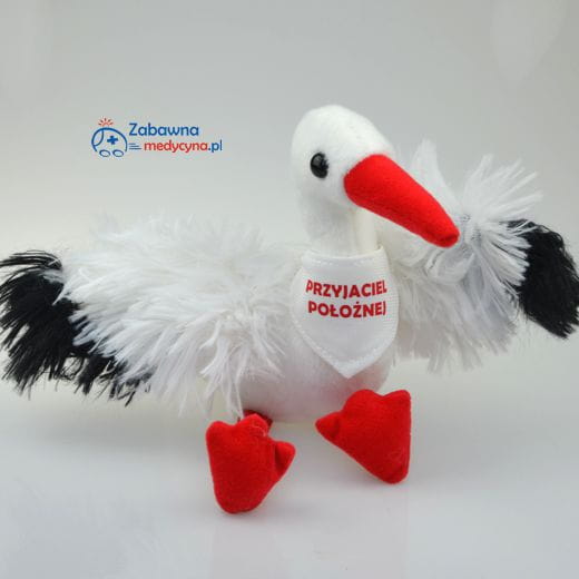 Maskotka nada się zarówno do zabawy dla naszych pociech, a także jako dość oryginalny upominek dla położnej. Skrzydła pokryte są materiałem imitującym bocianie piórka, dzięki czemu maskotka prezentuje się na prawdę realistycznie ;)