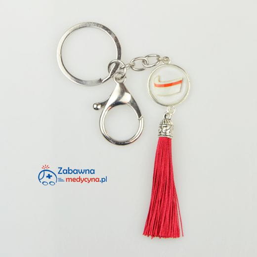 Brelok z wypukłą zawieszką czepka położniczego oraz z czerwonym frędzlem - chwostem. Posiada duży karabinek, dzięki któremu możemy łatwo przymocować brelok np. do torebki czy plecaka, a także mocne kółko do przymocowania kluczy. Wspaniały jako upominek dla położnej :)