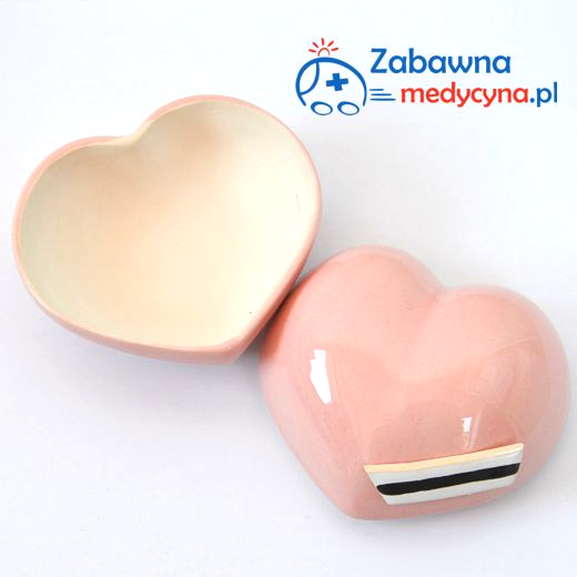 Serduszko z czepkiem pielęgniarskim (czarny pasek) to śliczne, ceramiczne pudełeczko na skarby - możesz schować w nim biżuterię lub inne cenne rzeczy. Dzięki motywowi czepka świetnie sprawdzi się jako prezent dla pielęgniarki. :) Serduszko jest dostępne w dwóch wariantach kolorystycznych: pastelowy róż oraz błękit.