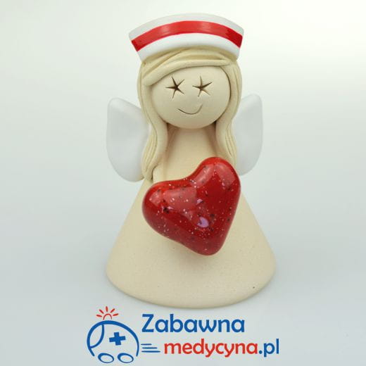 Dużym atutem jest fakt, że figurki są produkowane ręcznie w Polsce! Obdarowana osoba na pewno będzie zadowolona z prezentu, wykonanego z niezwykłą starannością. :) Anioł położna z sercem wykonany z ceramiki, wypalony w temperaturze 1050 stopni Celsjusza.