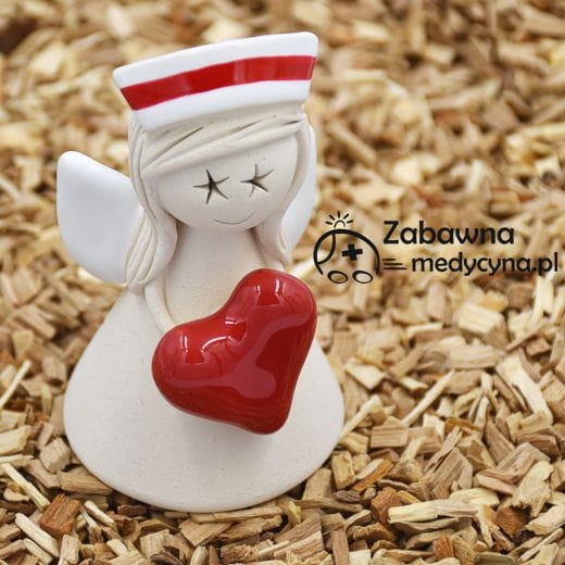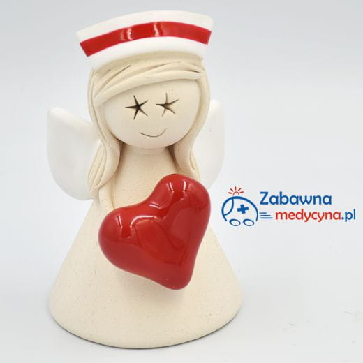Ceramiczny anioł na prezent dla położnej z sercem