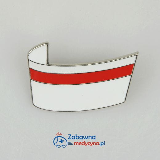 Czepek przypinka dla położnych ze srebrnym wykończeniem.
