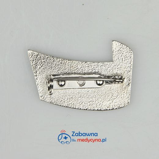 Rozmiar 23 mm x 35 mm. Mocowanie na agrafkę.