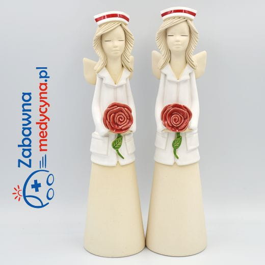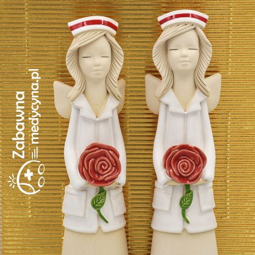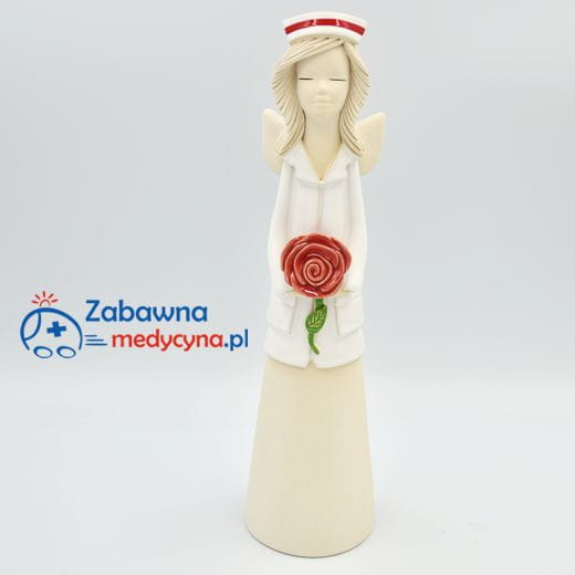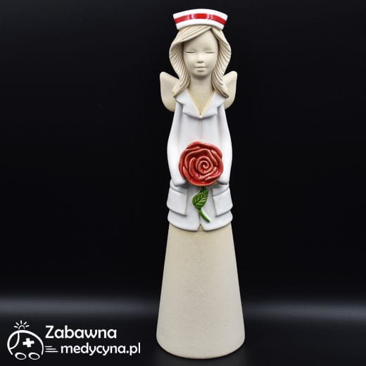 Szukasz oryginalnego prezentu jako podziękowanie dla położnej, a może szukasz prezentu z okazji odejścia na emeryturę? Anioł położna z różą idealnie sprawdzi się jako elegancki prezent. Może być też świetną dekoracją każdego wnętrza. Wersja figurki z nową fryzurą - długimi rozpuszczonymi włosami oraz pięknie zrobioną różą.
