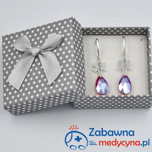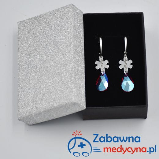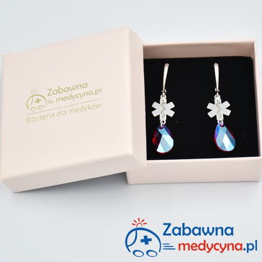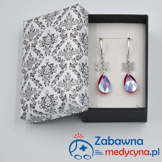 Kolor kryształu to Light Siam czyli głęboka czerwień z dodatkiem Shimmer, który nadaje fantastyczny blask i w niesamowity sposób odbija światło. Eskulap medyczny to wzór idealnie nadający się na prezent dla studentki medycyny, studentki ratownictwa medycznego, studentki pielęgniarstwa, ale także kolczyki z eskulapem świetnie sprawdzą się jako uzupełnienie stylizacji lekarki, ratowniczki czy pielęgniarki. Ze względu na ich przepiękny wygląda będą się także nadawać do sukni ślubnej czy wieczorowej:)