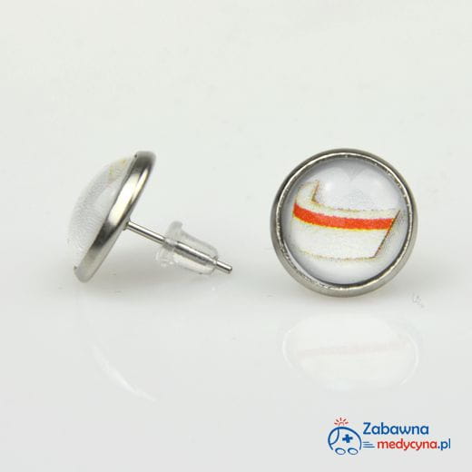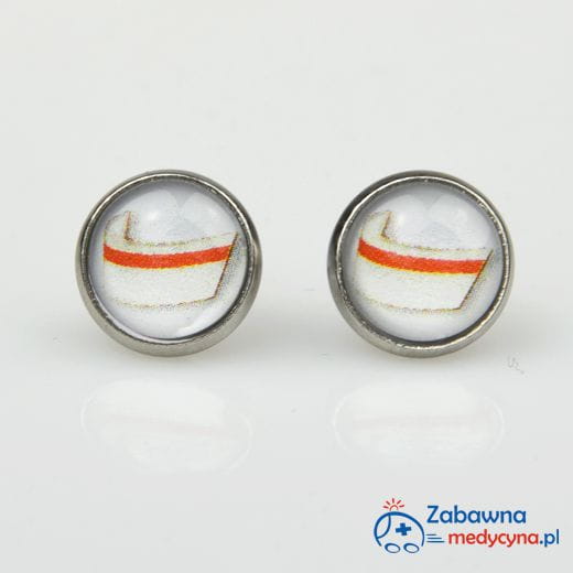 Kolczyki kaboszony z motywem czepka położniczego. Element biżuterii, który musi mieć każda położna. :) Podkreślą pasję z jaką podchodzisz do wykonywanego zawodu, a dzięki krótkiej formie sztyftu, nie będą przeszkadzały w pracy.