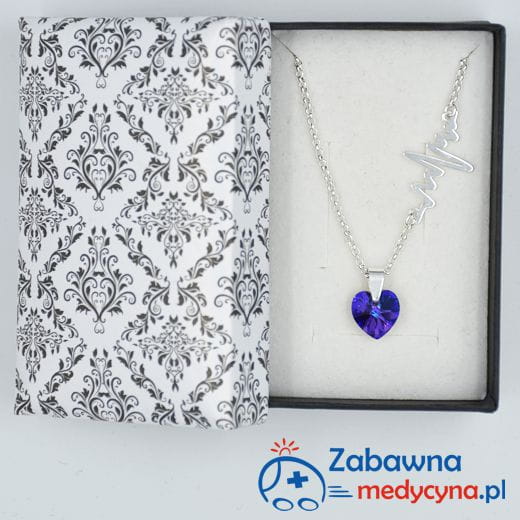 Wyjątkowy prestiżowy naszyjnik z serii celebrytek z linią EKG oraz oryginalnym kryształem SWAROVSKIEGO w kolorze heliotrope wykonanym jako cudowny wisiorek, a powyżej linia życia umieszczona jako ozdobny łącznik w naszyjniku. Naszyjnik szczególnie będzie pasował wszystkim Paniom pracującym w medycynie. :) Podkreśl swój styl i charakter dobierając unikatową biżuterię.