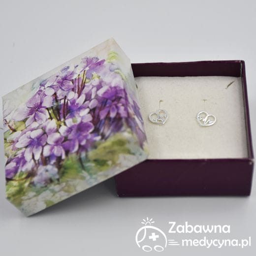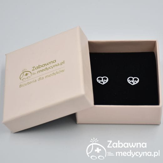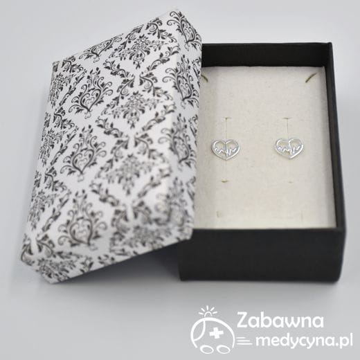 Kolczyki sztyfty serduszka z rytmem EKG.