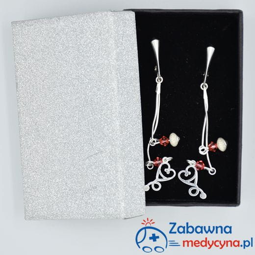 Kolczyki medyczne będą pasowały np. jako dodatek do eleganckiej sukienki na medyczny ślub, imprezę przyjaciół medyków z okazji 50, 60, 70 lat. ;) czy medyczne Wigilie, Walentynki czy wykłady akademickie.