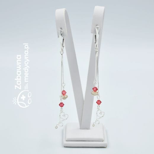 Lubicie pomysły, które są nie tylko estetycznie ładne, ale także podkreślają Wasz medyczny awangardowy charakter pracy? Autorskie długie kolczyki ze stetoskopem są kwintesencją smaku i dobrego medycznego stylu. Kształt stetoskopu w kolczykach kojarzy się jednoznacznie z medycyną dla każdego. :) Wykonane w całości ze srebra próby 925 oraz kamieni Swarovski w kolorze dojrzałego arbuza -padparadscha.