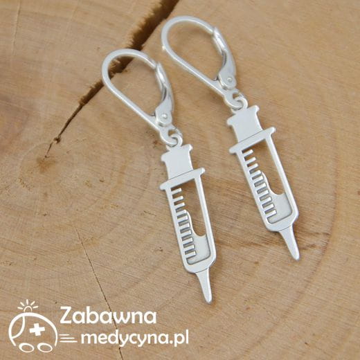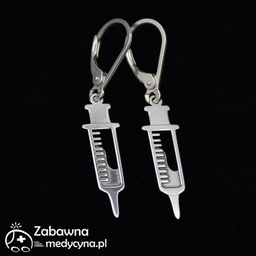 Kształt strzykawki w kolczykach kojarzy się jednoznacznie z medycyną dla każdego. :) Wykonane w całości ze srebra próby 925 specjalnie dla naszego sklepu. Posiadają bigle angielskie w kształcie łezki, które są wygodne w noszeniu, a także zapobiegają wypadaniu kolczyka z ucha. ***