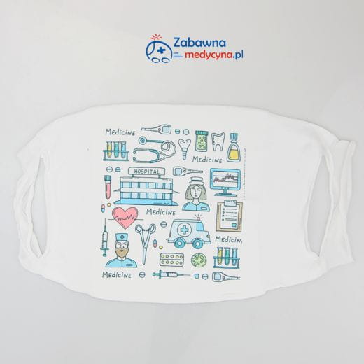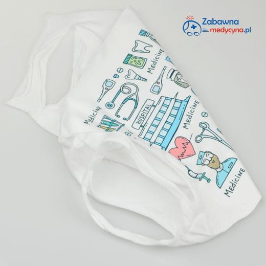 Kolorowy, wesoły nadruk z medycznymi elementami będzie idealny dla medyków po pracy :)