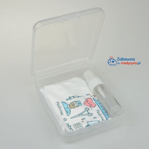 Pewnie zdarzyło ci się zapomnieć maseczki, albo zastanawiałeś się co zrobić z noszoną już maską. Z pomocą przychodzi nasz zestaw z pojemnikiem na maseczkę. W środku znajduje się czysta maseczka z nadrukiem ZABAWNA MEDYCYNKA, a po jej użyciu możesz ją bezpiecznie schować w pudełku i przetransportować do domu aby ją wyprać.